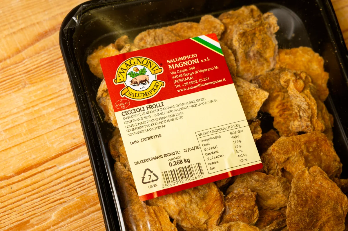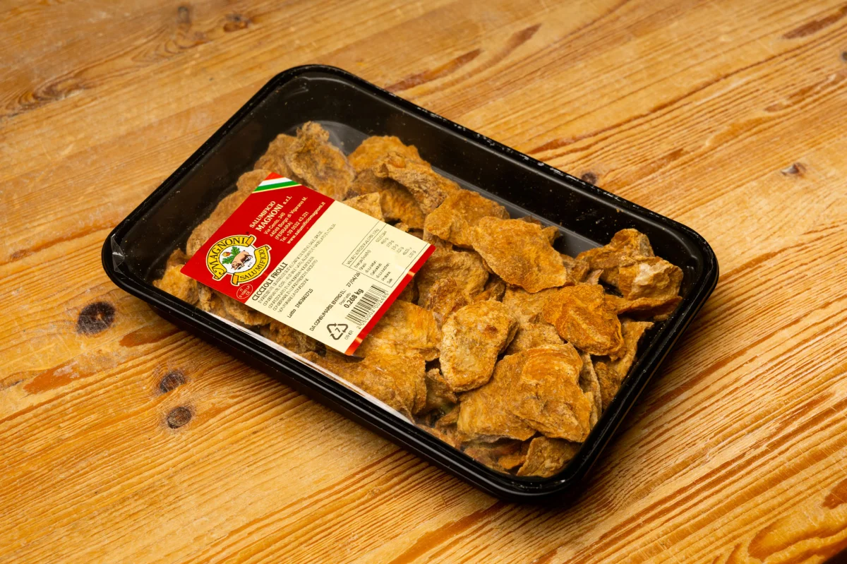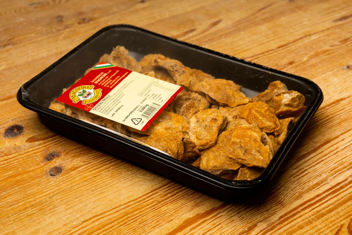 Ciccioli frolli are a specialty of the rural peasant tradition, made through the slow processing of pork and characterized by a crumbly and crunchy texture.